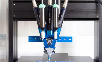 Viscotec eco-DUO is a 2 component mixing and dispensing system. It provides true volumetric output for 2 component materials. The smallest quantities of 2 component fluids and pastes are precisely mixed and dispensed. A clean, process-reliable dose is achieved regardless of fluctuations in viscosity